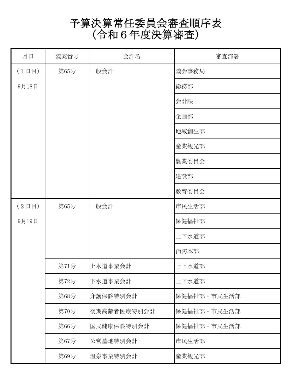 9月18~19日 令和7年第3回市議会定例会/予算決算常任委員会