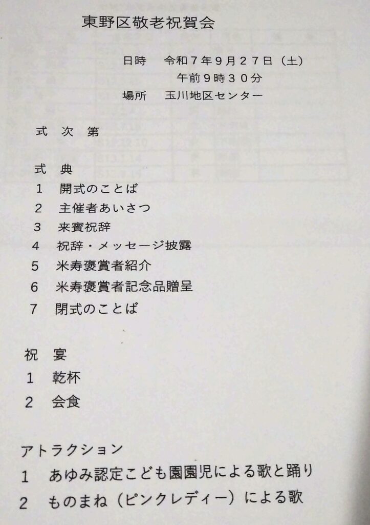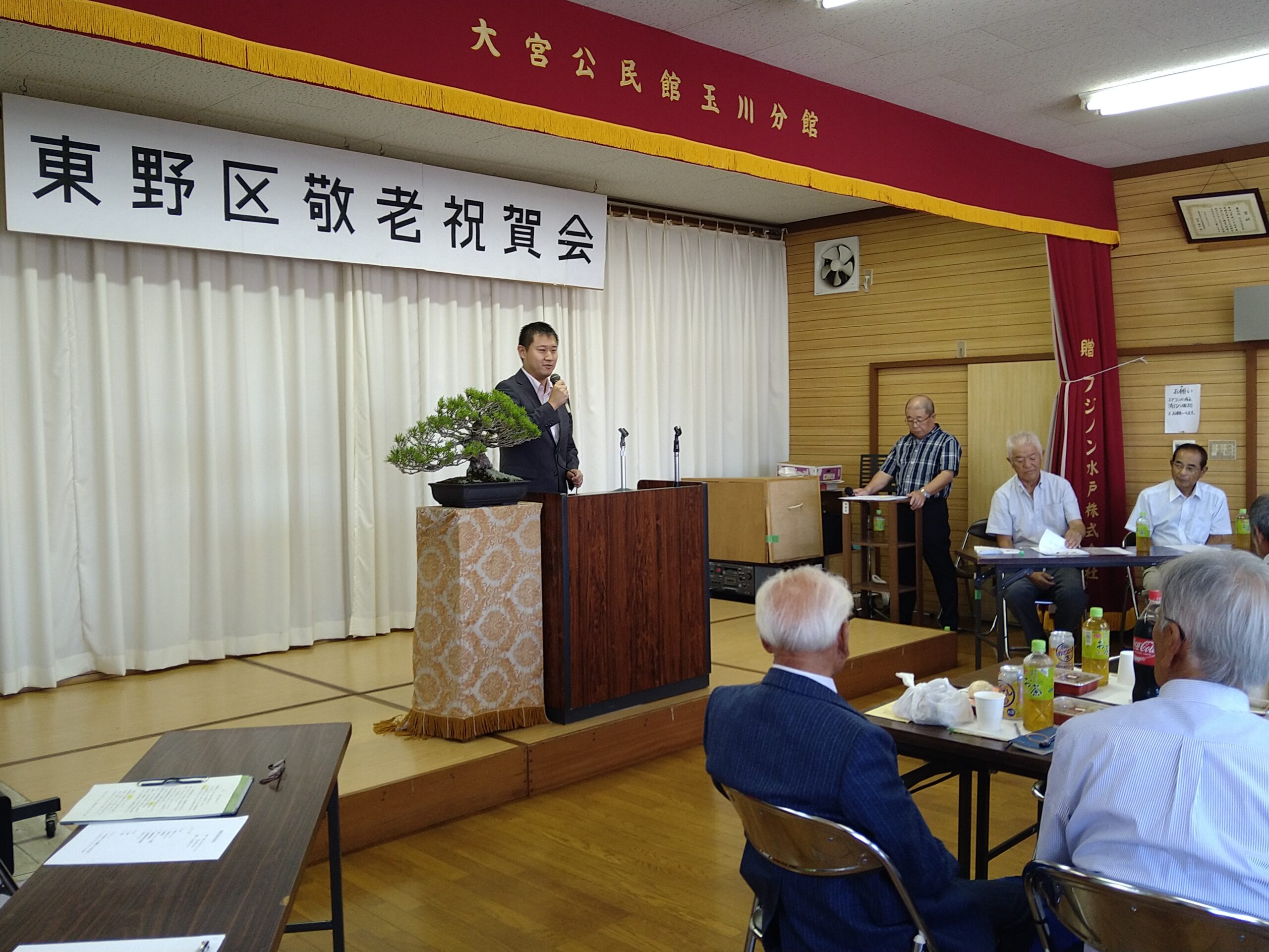 昨日は東野区の敬老祝賀会、本日は八田区の敬老会に来賓として出席しました。
