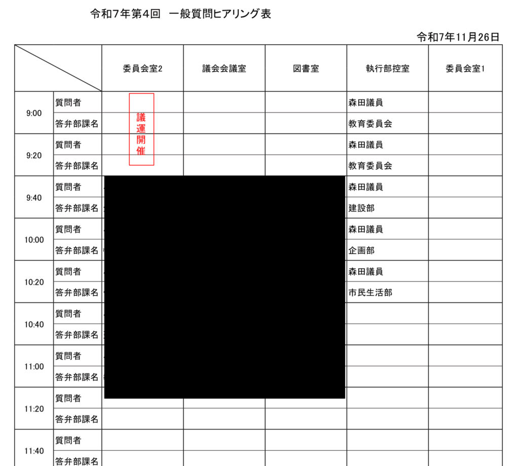 一般質問の日時が確定次第、改めてお知らせします。