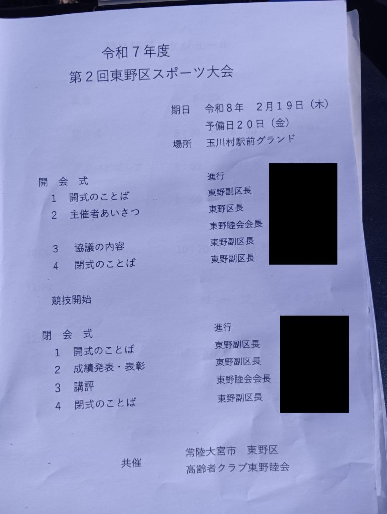 今回の大会を企画・準備された東野区長および睦会会長ほか、関係各位の皆様に改めて感謝申し上げます。
