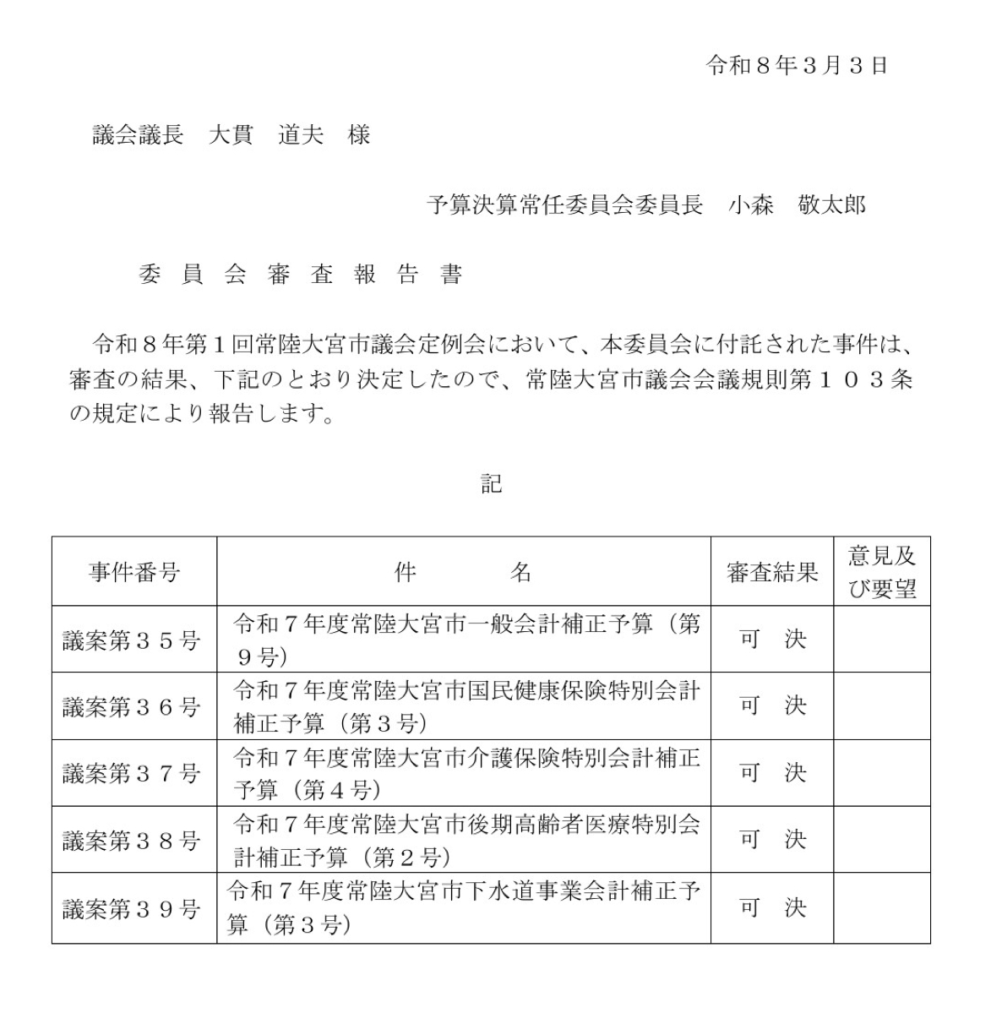 令和7年度補正予算の歳入・歳出について採決を行いました。