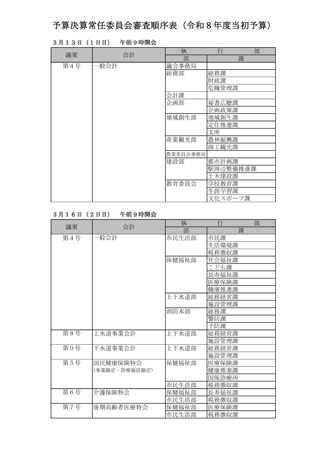 3月16日 令和8年第1回市議会定例会/予算決算常任委員会